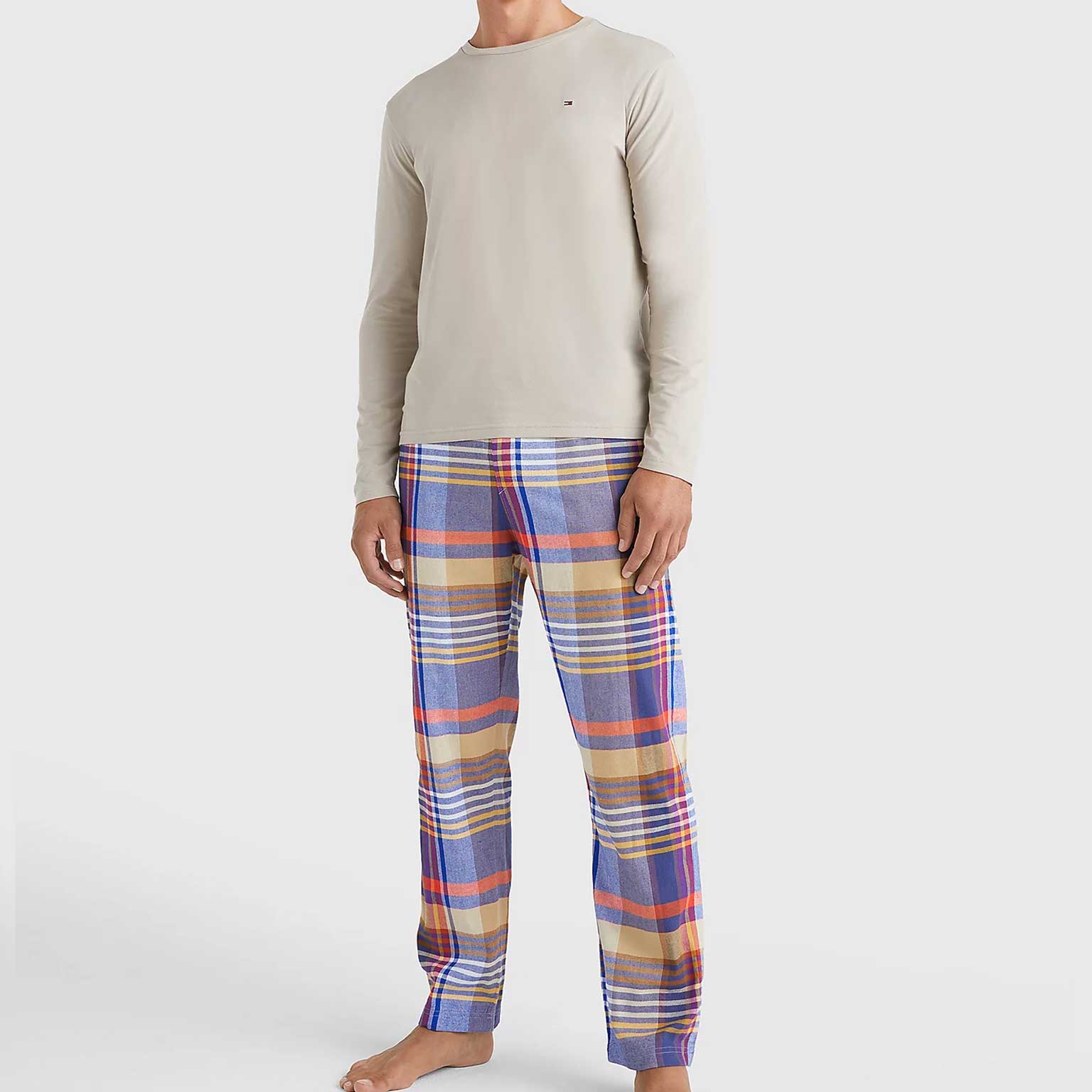 Stijlvolle flanellen pyjama set gemaakt van 100% katoen voor een relaxte fit rondom je lichaam. Het shirt is uitgevoerd met lange mouwen en een ronde hals en de set heeft een prachtig Tommy Hillfiger tailleband en een ruitpatroon.