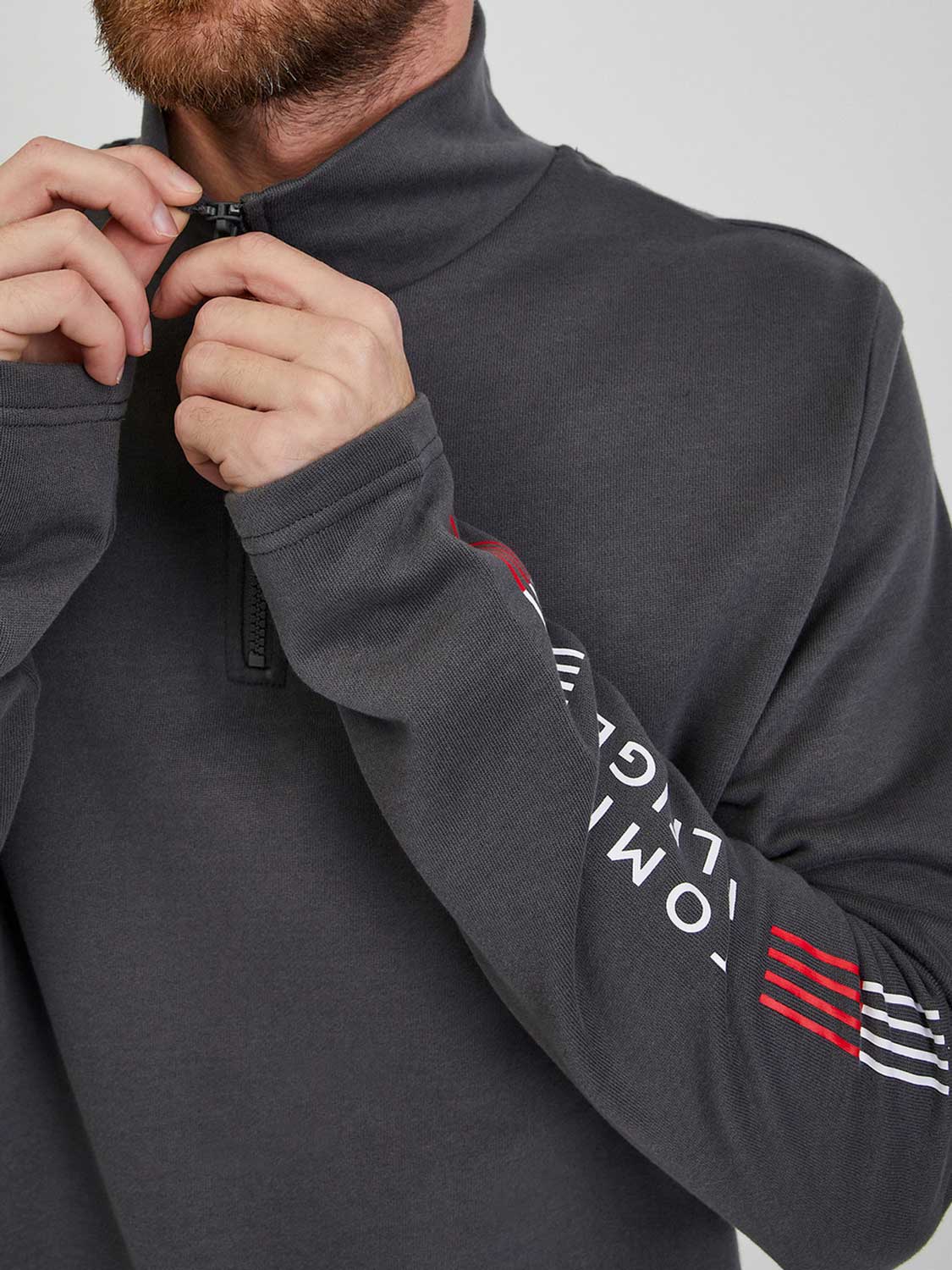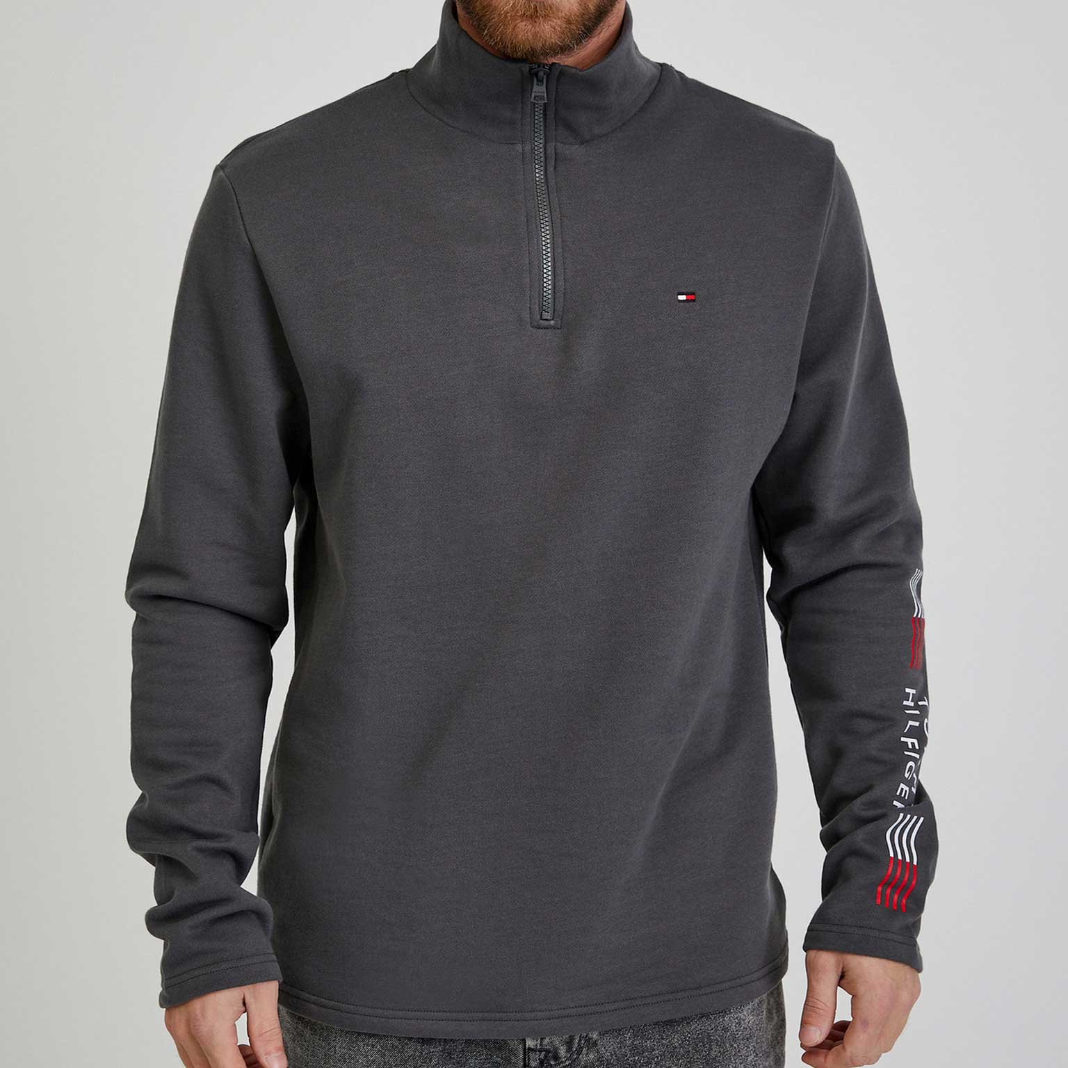 Sweater van Tommy Hilfiger die duurzaam is geproduceerd door een mix met biologisch katoen. De Sweater is uitgevoerd met een half lange rits, die je gemakkelijk open kunt doen voor een vrij en luchtig gevoel om even uit te zweten. Door de toevoeging van polyester voelt de sweater heerlijk zacht aan op de huid. De sweater heeft lange mouwen en een Tommy Hilfiger statement op de mouw.
