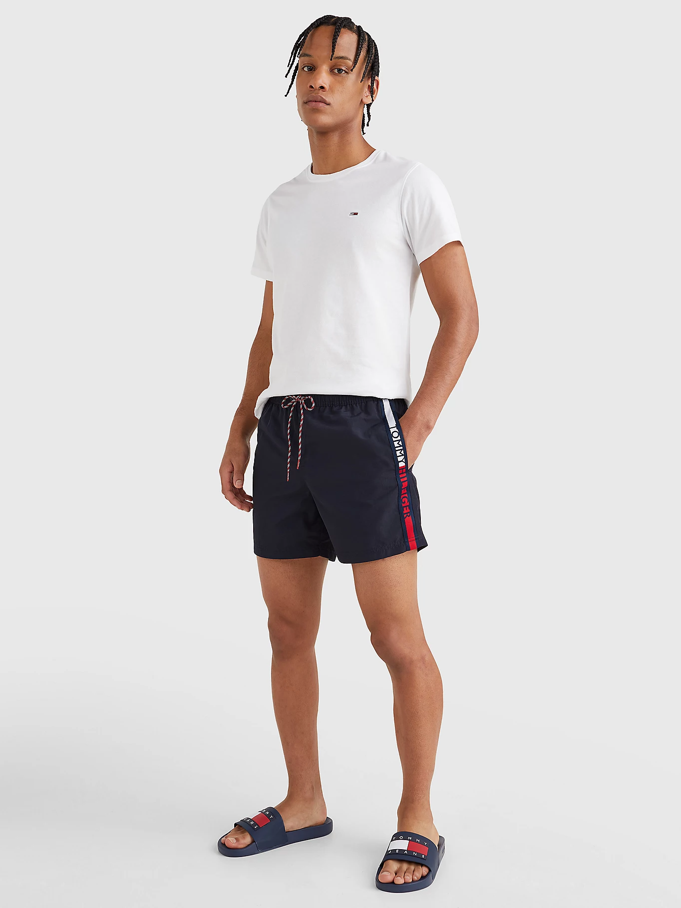 Dit zwemshort van Tommy Holfifer heeft een gemiddele beenlengten en is uitgevoerd in een unikleur met logotape aan de linker en rechts zijde voor die unieke Tommy look. Het zwemshort is gemaakt van gerecyclede nylon en heeft een trekkoord in de tailleband voor de perfecte fit. Aan de linker en rechterzijde vind je steekzakken in de zoom met als finishing touch een achterzak.