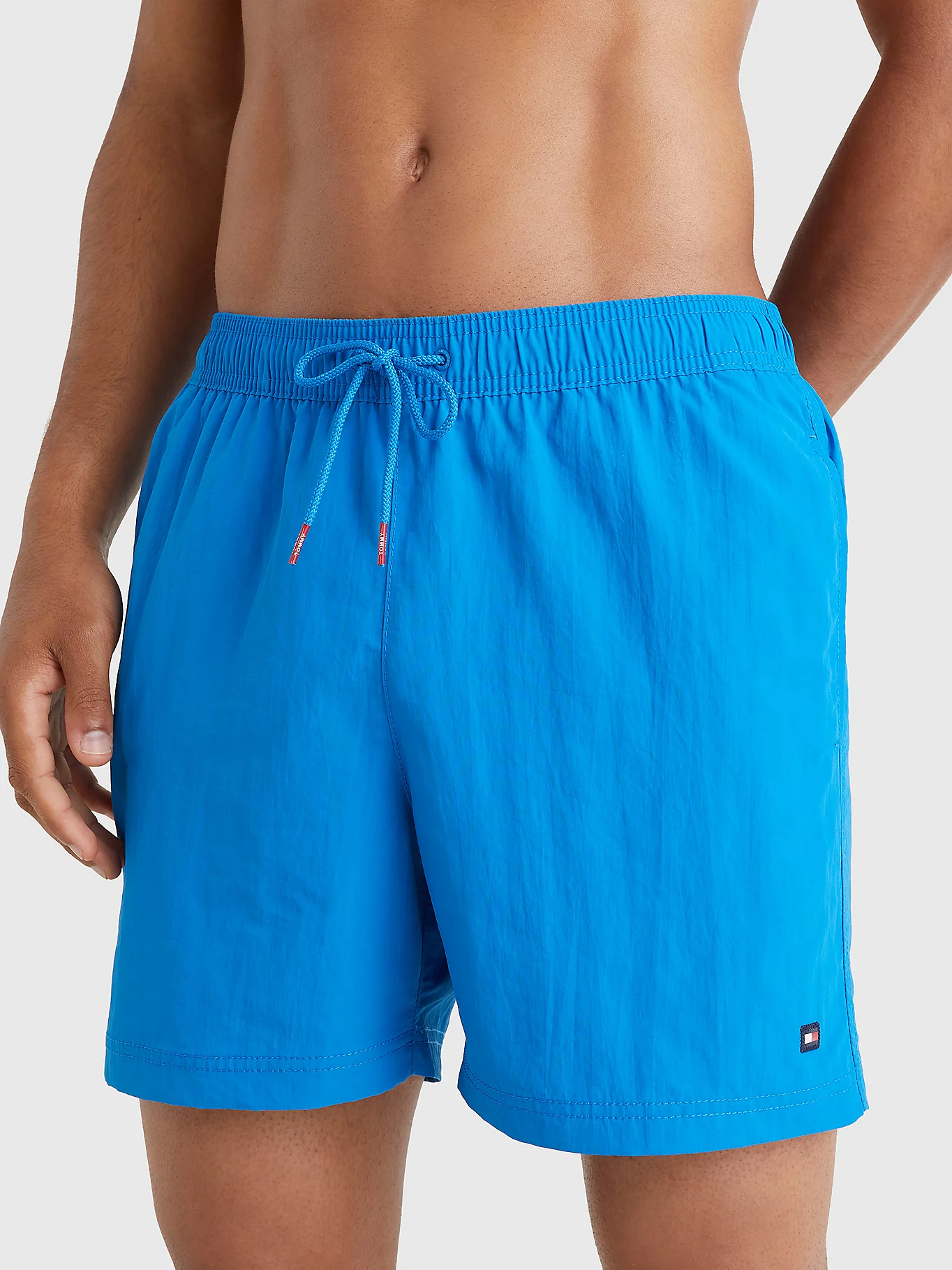 Zwemshort van Tommy Hilfiger met een gemiddelde lengte uitgevoerd in een unikleur. Het zwemshort is gemaakt van gerecyclede nylon en heeft een trekkoord in de heuplijn voor de perfecte fit. Aan de linker en rechterzijde vind je steekzakken in de zoom met als finishing touch een achterzak.