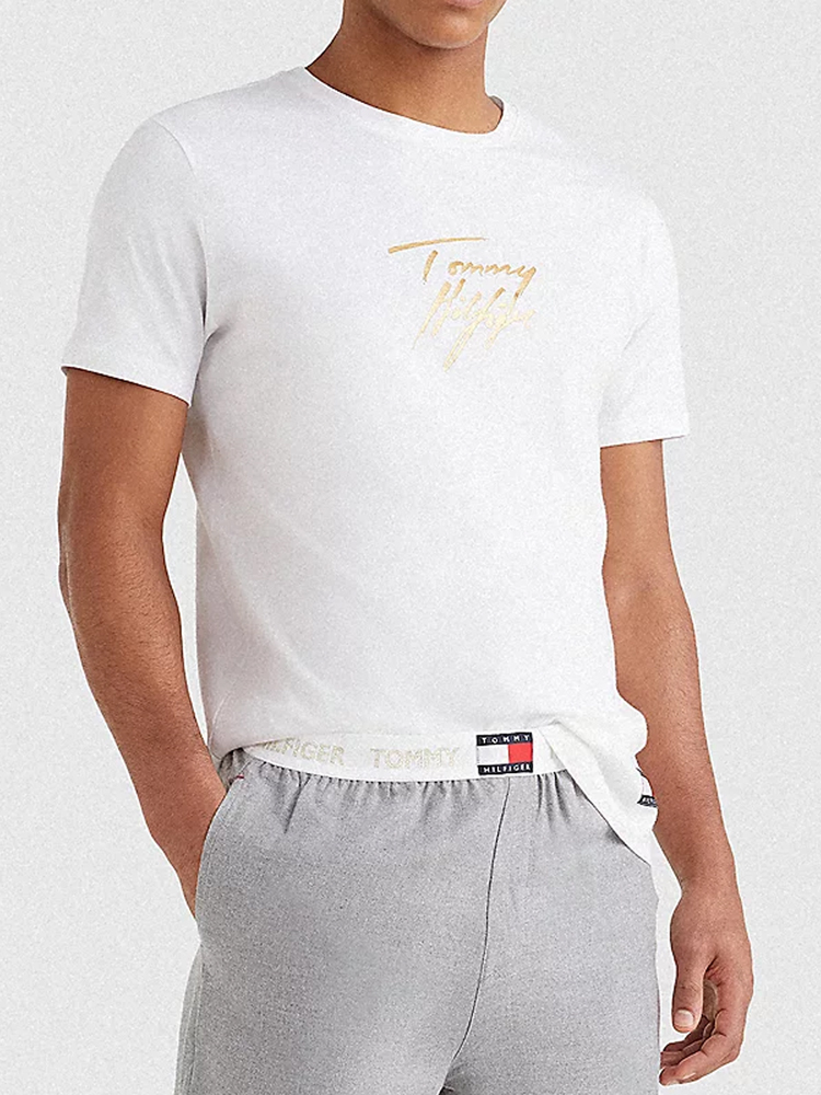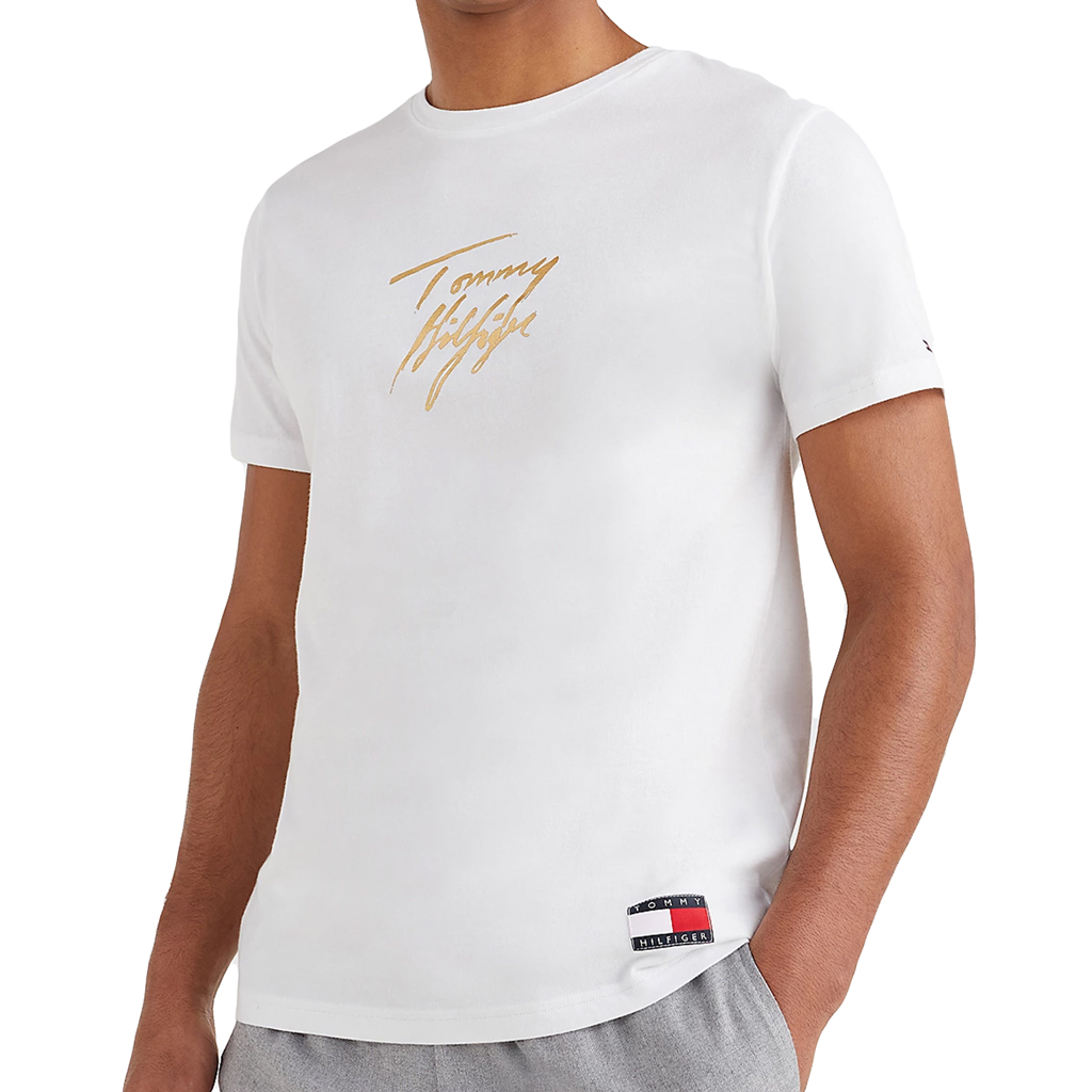 Wit Tommy Hilfiger T-Shirt gemaakt van 100% katoen met modern Tommy Hilfiger logo op de borst. Het shirt heeft korte mouwen en een ronde kraag. Door de regular fit valt het shirt losjes langs het lichaam.