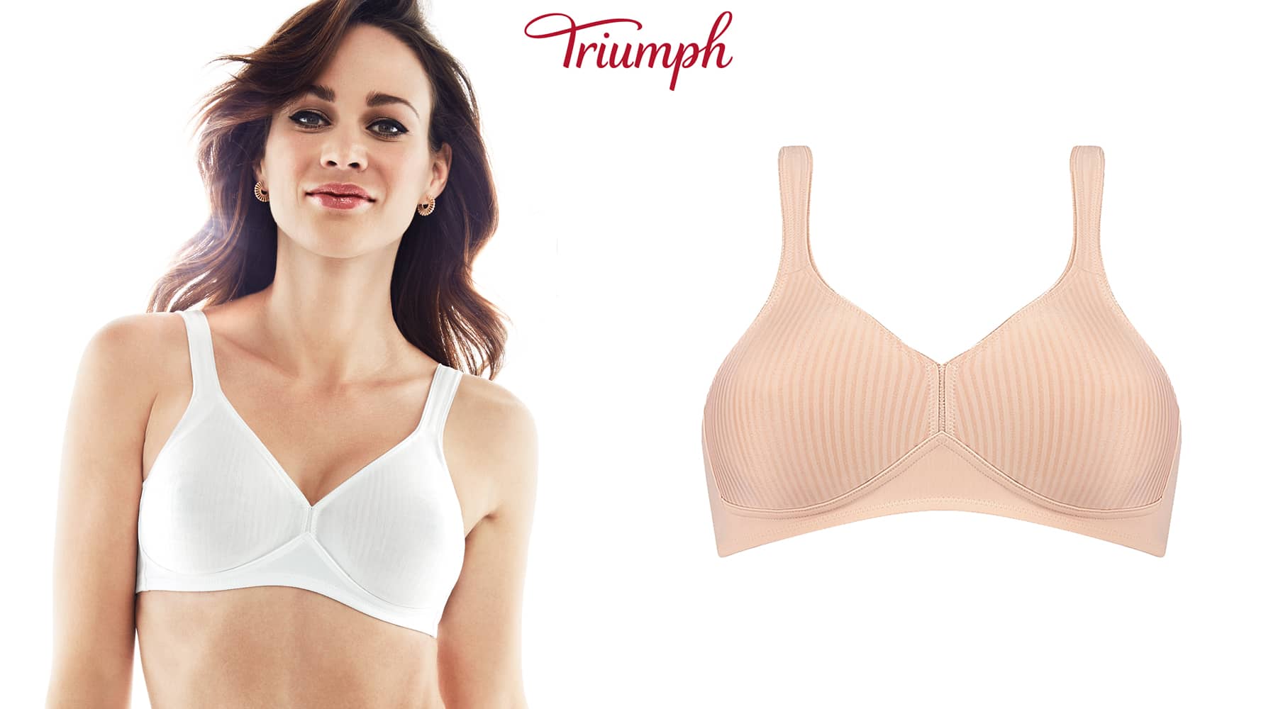 De Modern Soft + Cotton N is een beha van Triumph zonder beugel. Door de perfect vormgegeven cups weet deze beha je toch een prachtige decolleté te geven zonder verdere ondersteuning van een vulling of een beugel. De boorden van deze beha zijn elastisch waardoor deze perfect aansluit op de boezem. De achterzijde van de schouderbandjes zijn verstelbaar en tevens elastisch en de schouderbandjes zelf breed uitgevoerd om snijden in de schouders te voorkomen voor optimaal draagcomfort. Wanneer je een kwalitatief goede beha zonder beugel zoekt voor een goede prijs zit je met de Modern Soft + Cotton N van Triumph goed. Deze beha zonder beugel is verkrijgbaar tot in de D cup.